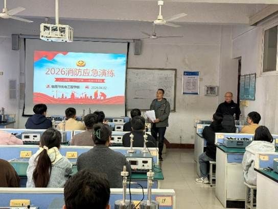 随后,物理实验中心主任袁老师围绕实验室消防安全知识、常见火灾隐患、初期火灾处置方法等内容进行了详细讲解,并说明本次应急演练的完整流程、疏散路线、集合地点及各环节的具体要求。