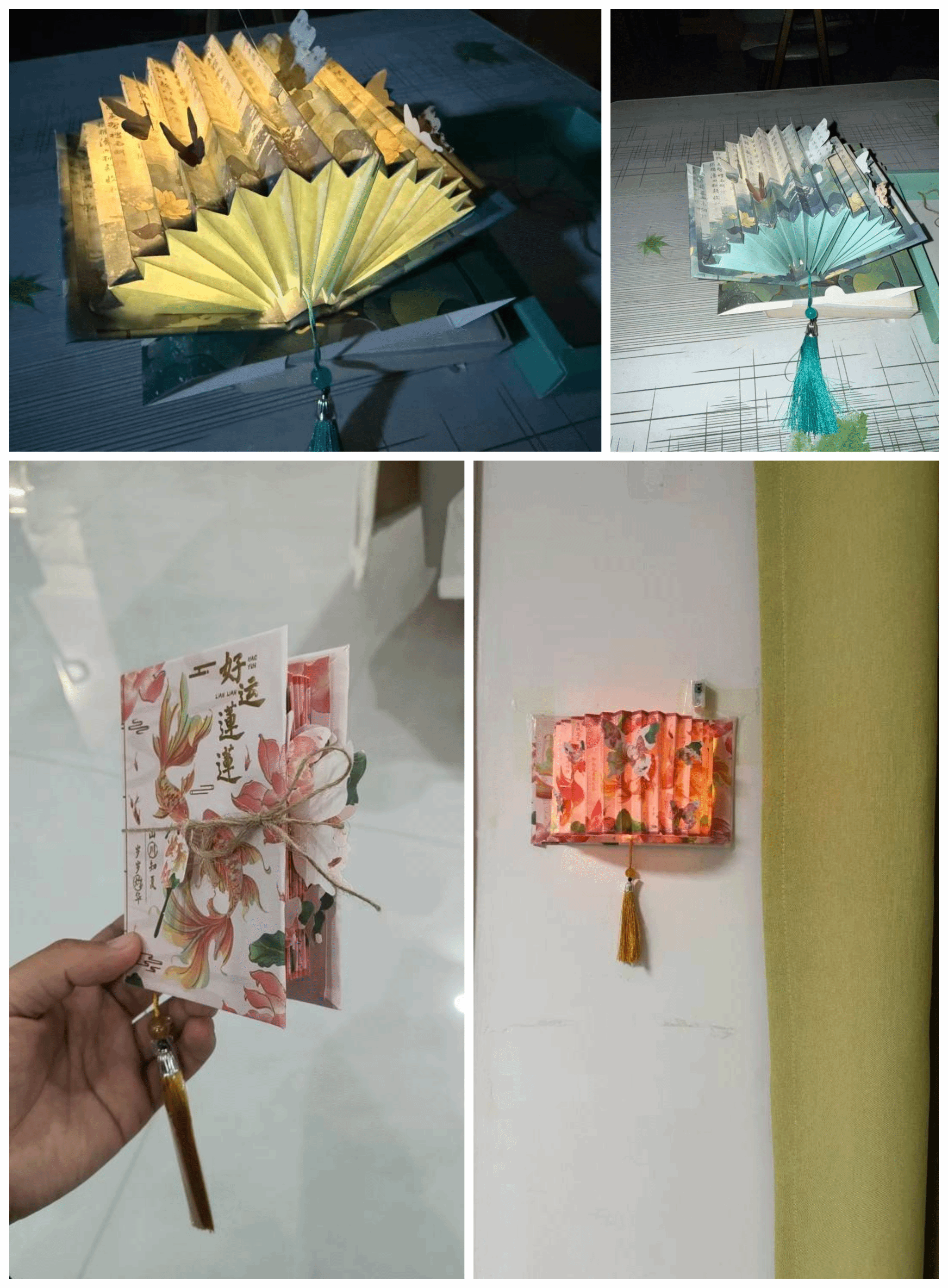 在老师的耐心示范下,大家纷纷化身“能工巧匠”,认真投入到制作中。裁剪宣纸、折叠扇面、安装灯饰……每一个步骤都凝聚着专注与巧思。大家互相交流心得,现场气氛热烈而温馨。经过一个多小时的精心制作,一盏盏造型雅致的古风书灯陆续完成,既传递了节日祝福,也展现了教职工的巧思与风采。