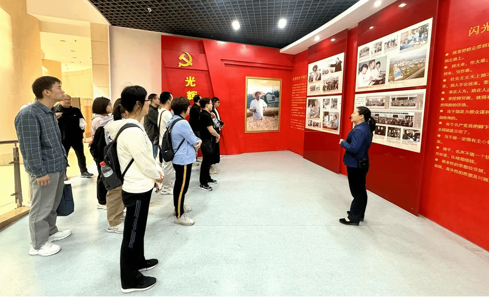 上午9时,首站抵达新乡县刘庄,共同参观史来贺纪念馆。纪念馆内,通过一幅幅珍贵的历史照片、一件件饱经沧桑的实物展品、一段段详实生动的文字记载,大家深入了解了史来贺同志实事求是、解放思想、与时俱进、开拓创新的精神内涵。史来贺,这位被誉为“全国乡镇党委书记的榜样”的传奇人物,以其坚定的共产主义信仰、无私奉献的高尚情操和带领群众艰苦奋斗的卓越领导才能,在刘庄这片土地上书写了波澜壮阔的奋斗史诗。大家纷纷表示,要以史来贺同志为榜样,学习他坚定的理想信念、勇于担当的精神和一心为民的情怀,将这种精神力量转化为工作中的实际行动,努力在教育教学、科研创新等岗位上发光发热。